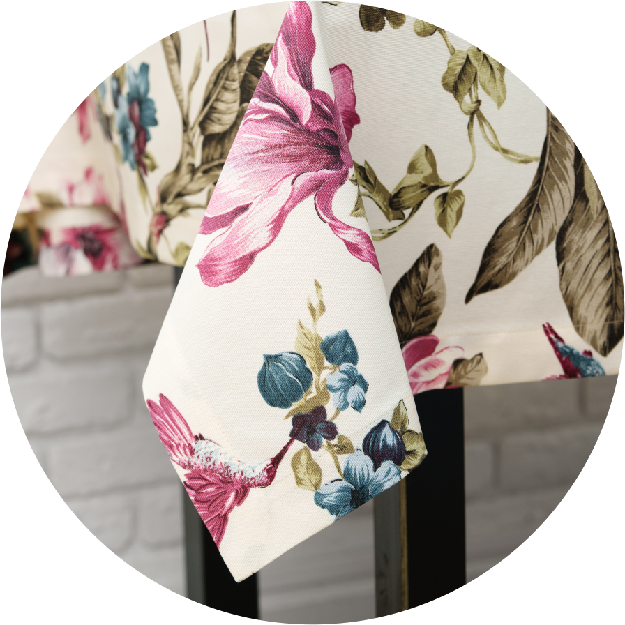 Obrusy, zasłony, parasole, poduszki, leżaki, parawany, bannery, flagi.
